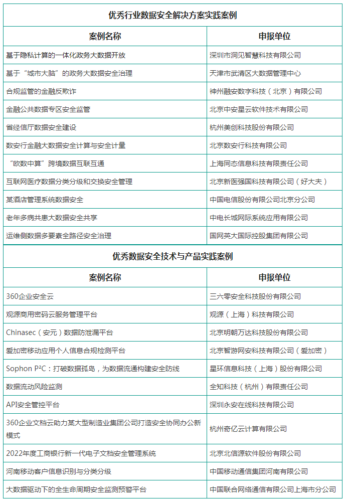 关于公布“2022年数据安全优秀实践案例”评选结果的通知