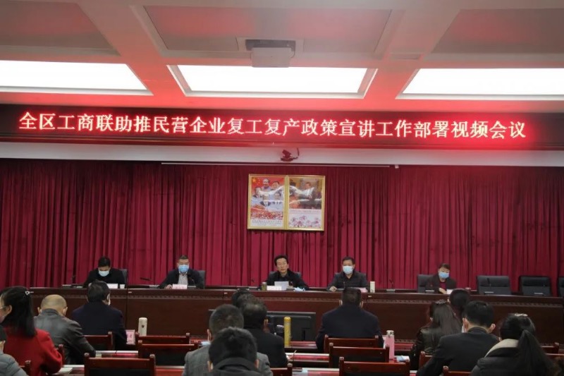 2020年03月31日,区工商联组织召开全区工商联助推民营企业复工复产政策宣讲动员部署视频会议。会议由区工商联党组成员、副主席兼秘书长张蓉主持,自治区政协副主席、区工商联主席、总商会会长阿沛·晋源出席会议并作重要讲话。区党委统战部副部长、工商联党组书记纪世德出席会议。