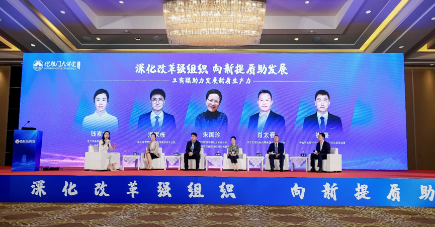 温州市委统战部副部长、市工商联党组书记钱素文,宁波市照明电器行业协会会长、中照联赛尔富照明有限公司董事长朱国珍,浙江省湖北商会常务副会长、秘书长肖太春,浙江省委党校工商管理教研室副主任潘家栋,中国农业银行宁波分行公司业务部总经理崔磊围绕“深化改革强组织、向新提质助发展”开展对话。